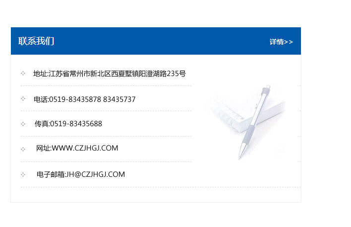 傳真:0519-83435688    郵編:213135    網址:WWW.czjhgj_com.hnst518.com    電子郵箱:JH@czjhgj_com.hnst518.com